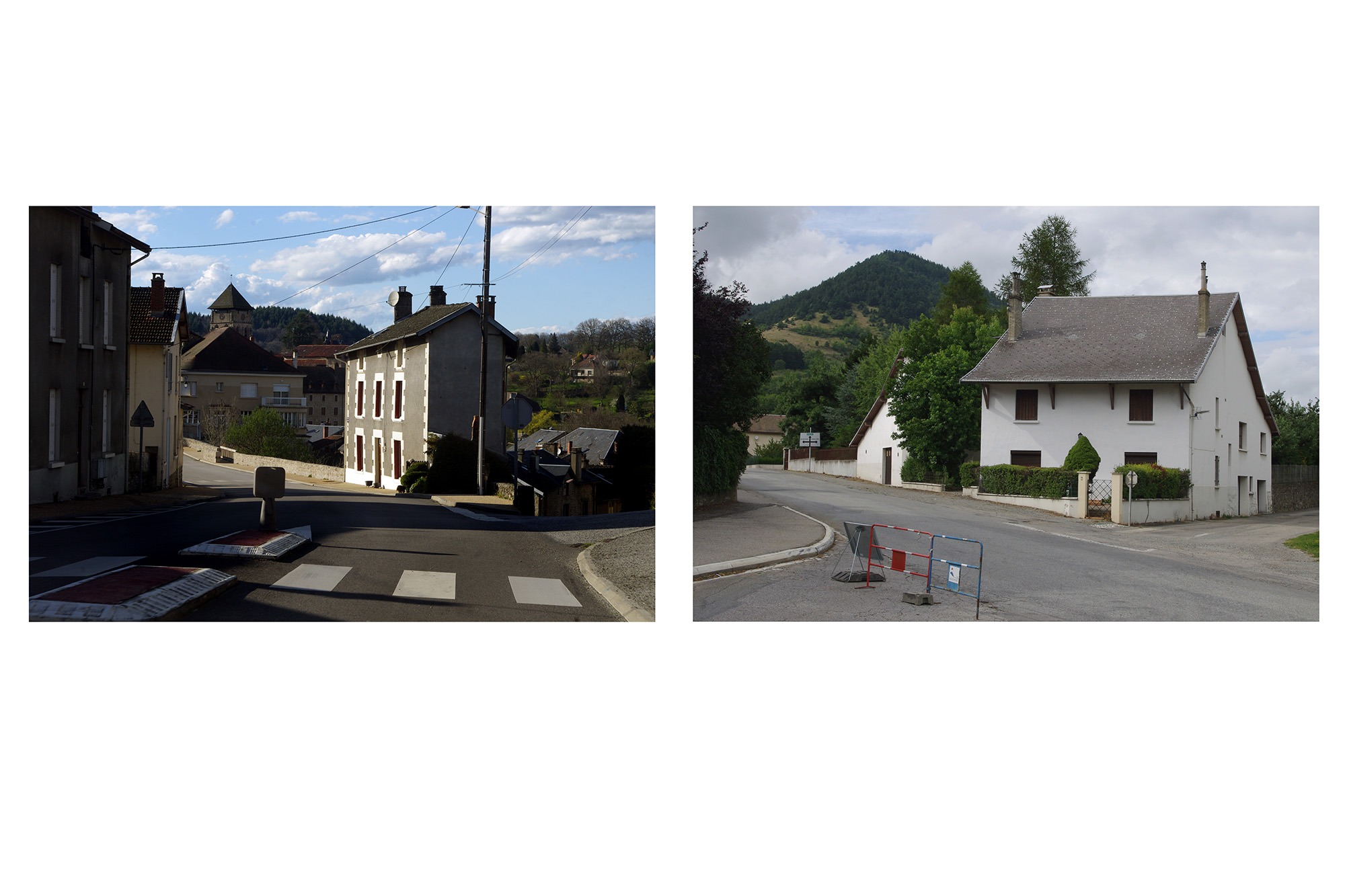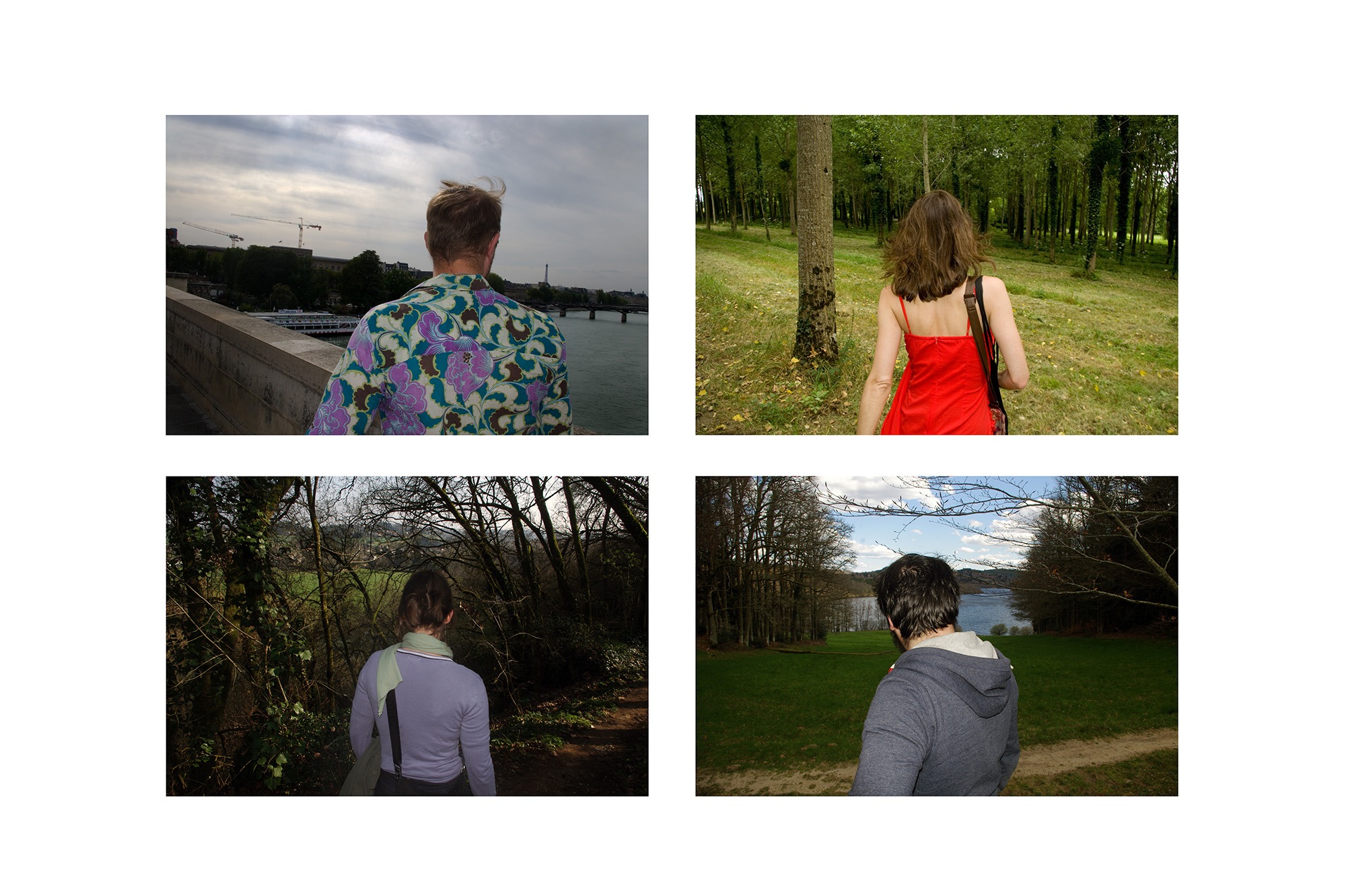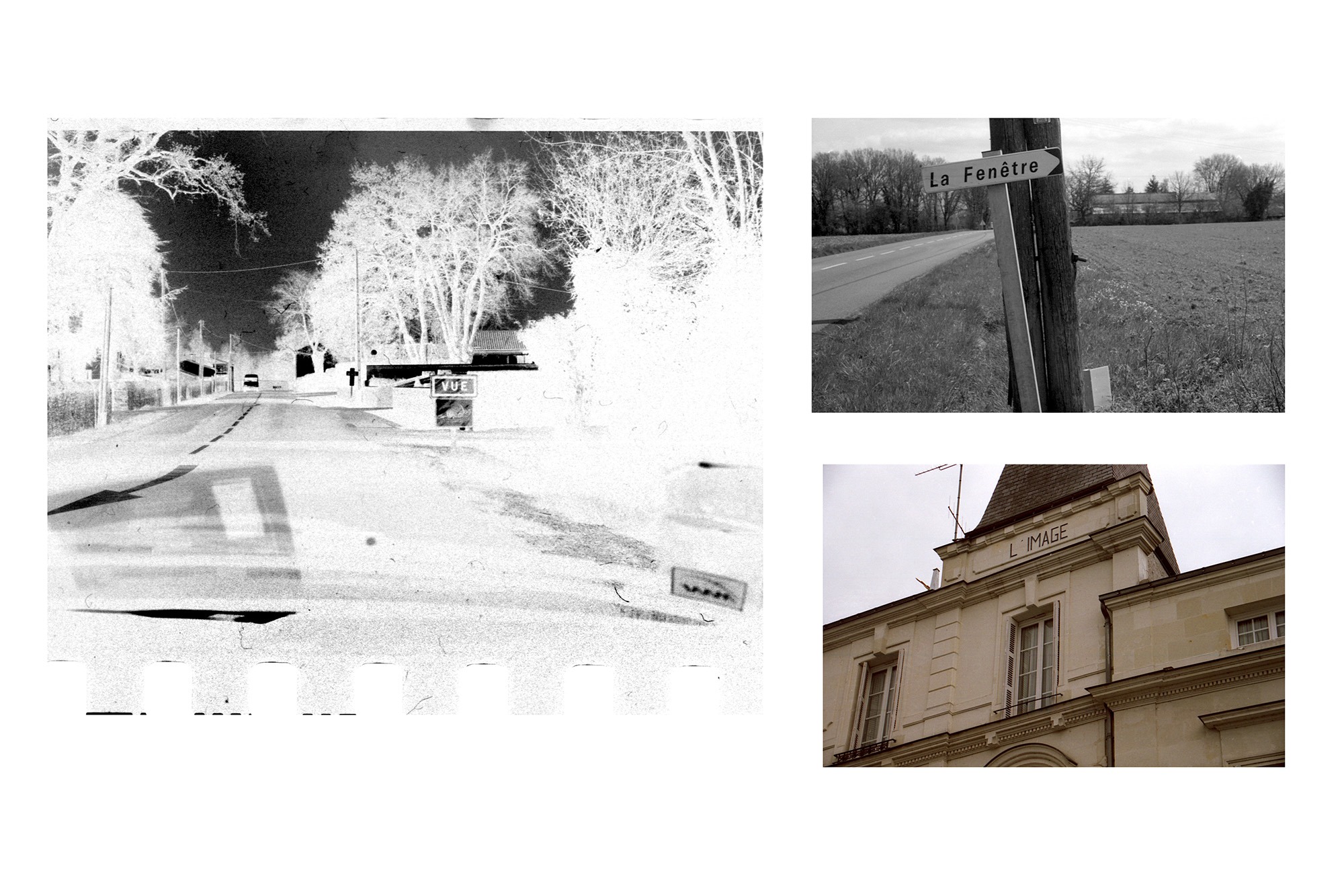 En 2016, j’avais entrepris de revoir une bonne partie des photographies de paysage que j’avais prises depuis vingt ans. Afin d’essayer de mieux comprendre le regard que je porte spécifiquement sur le paysage et tout ce qui le compose, j’ai fait des sortes de planches qui mettent en rapport les images sans tenir compte de leur origine, du lieu représenté ou de l’intention initiale de la prise de vues. J’ai fini par faire de ces planches des séries à part entière. Chaque planche propose une mise en rapport de plusieurs images. La nature de ce rapport est différent dans chacune d’elles. L’ensemble des planches fait partie de la collection de l’Artothèque de Châtellerault.