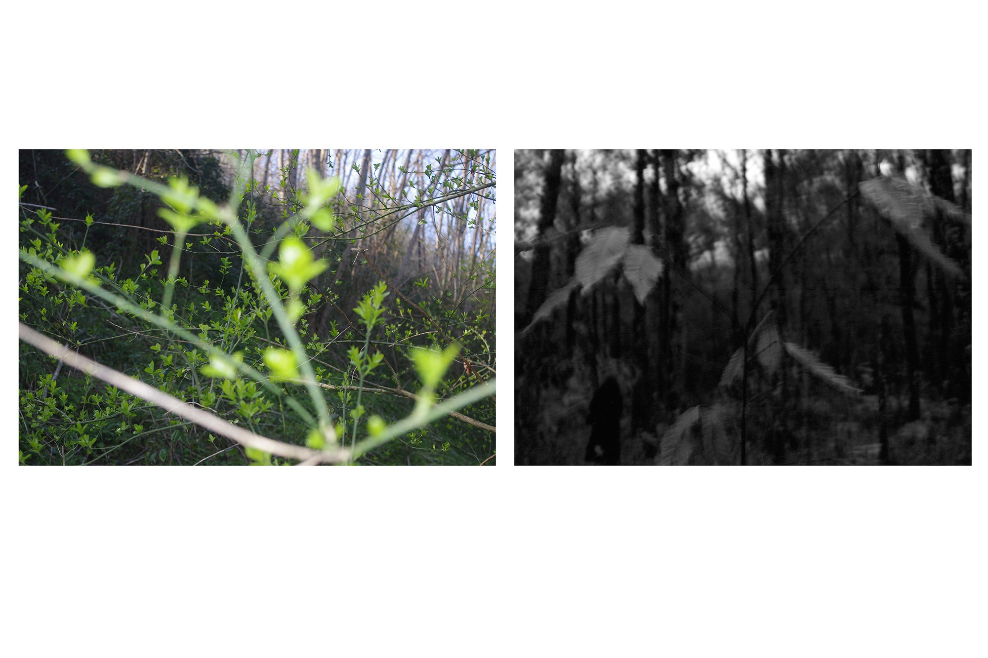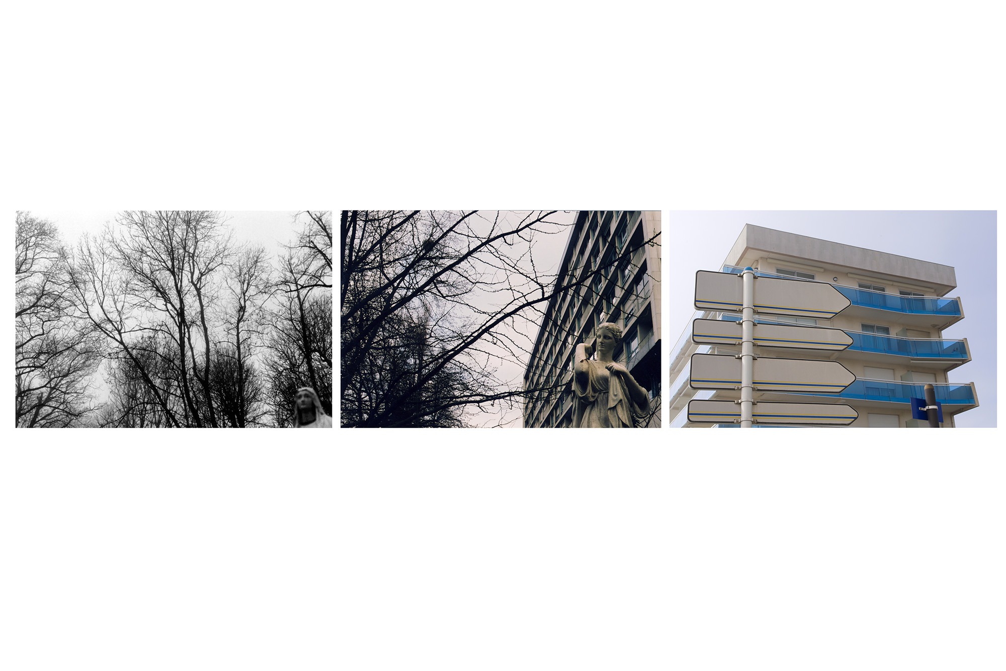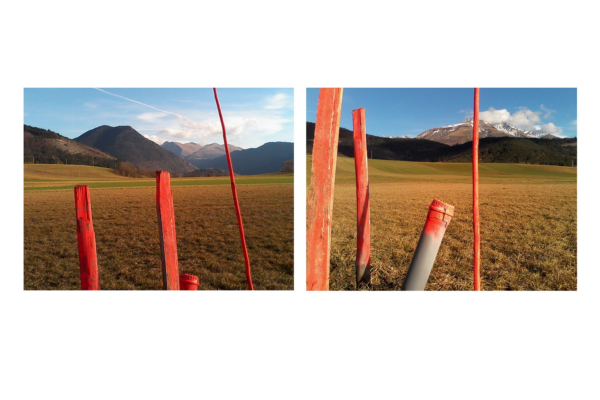 En 2016, j’avais entrepris de revoir une bonne partie des photographies de paysage que j’avais prises depuis vingt ans. Afin d’essayer de mieux comprendre le regard que je porte spécifiquement sur le paysage et tout ce qui le compose, j’ai fait des sortes de planches qui mettent en rapport les images sans tenir compte de leur origine, du lieu représenté ou de l’intention initiale de la prise de vues. J’ai fini par faire de ces planches des séries à part entière. Chaque planche propose une mise en rapport de plusieurs images. La nature de ce rapport est différent dans chacune d’elles. L’ensemble des planches fait partie de la collection de l’Artothèque de Châtellerault.