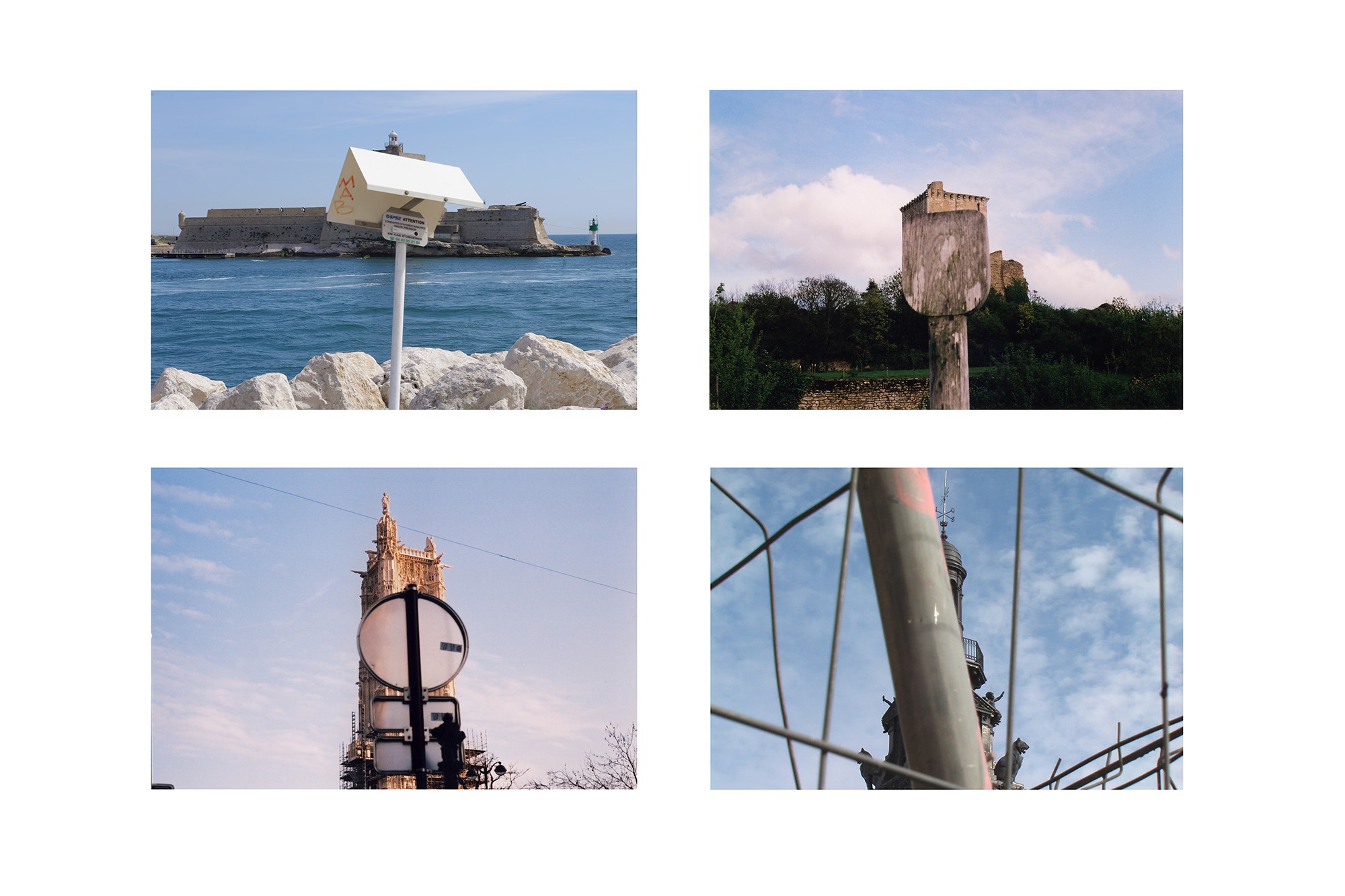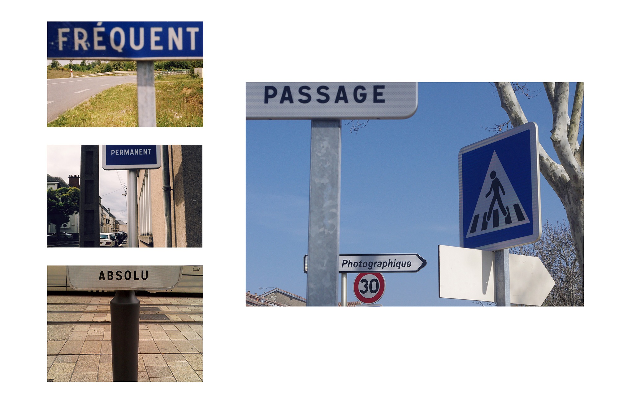 In 2016, I set out to review a large number of the landscape photographs I had taken over the last twenty years. In an attempt to better understand my specific view of landscape and all the elements that compose it, I made a series of boards that juxtaposes and confronts the images regardless of their origin, the place represented or whatever the initial intention of the shoot was. In the end, I turned these plates into a series in their own right. Each plate suggests a relationship between several images. The nature of this relationship is different in each one. The complete set is in the collection of the Châtellerault Art Library.